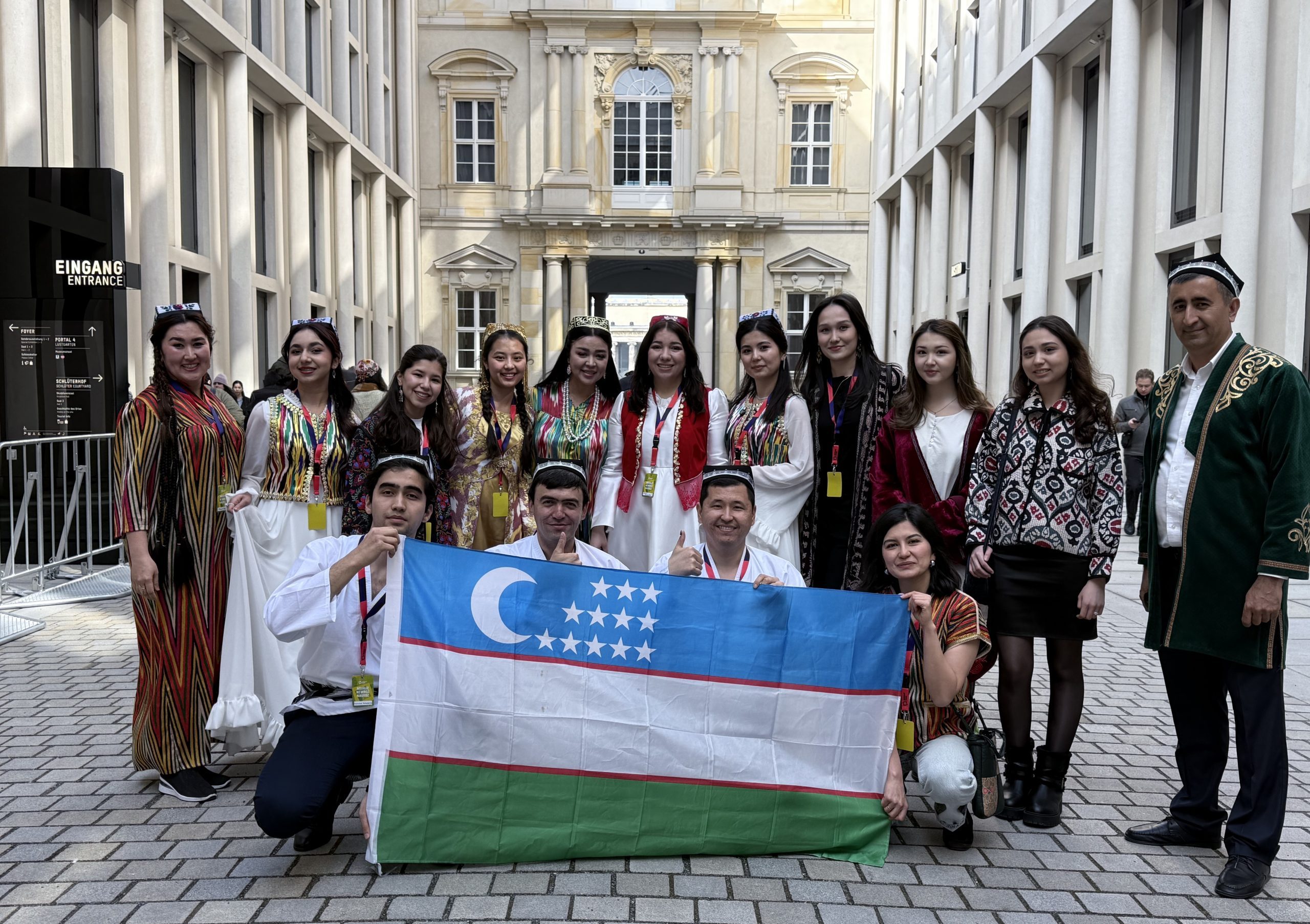Mit rund 9.000 Besucher:innen wurde das Navro’z-Fest im Humboldt Forum zu einem der größten kulturellen Highlights des Jahres. Es entstand ein erlebbarer Kulturraum – ein Tag, der zeigte, wie internationale Zusammenarbeit konkret gelebt werden kann. Berlin, ohnehin eine Stadt der Vielfalt, wurde an diesem Tag um eine spürbare Erfahrung reicher. Als zentraler Akteur brachten wir die Kultur Usbekistans auf die Bühne des Humboldt Forums. Das Projekt fand unter der Leitung des Humboldt-Forums gemeinsam mit sechs weiteren Berliner Kulturvereinen statt, die kulturelle Aspekte des Navro’z aus weiteren Ländern präsentierten.
